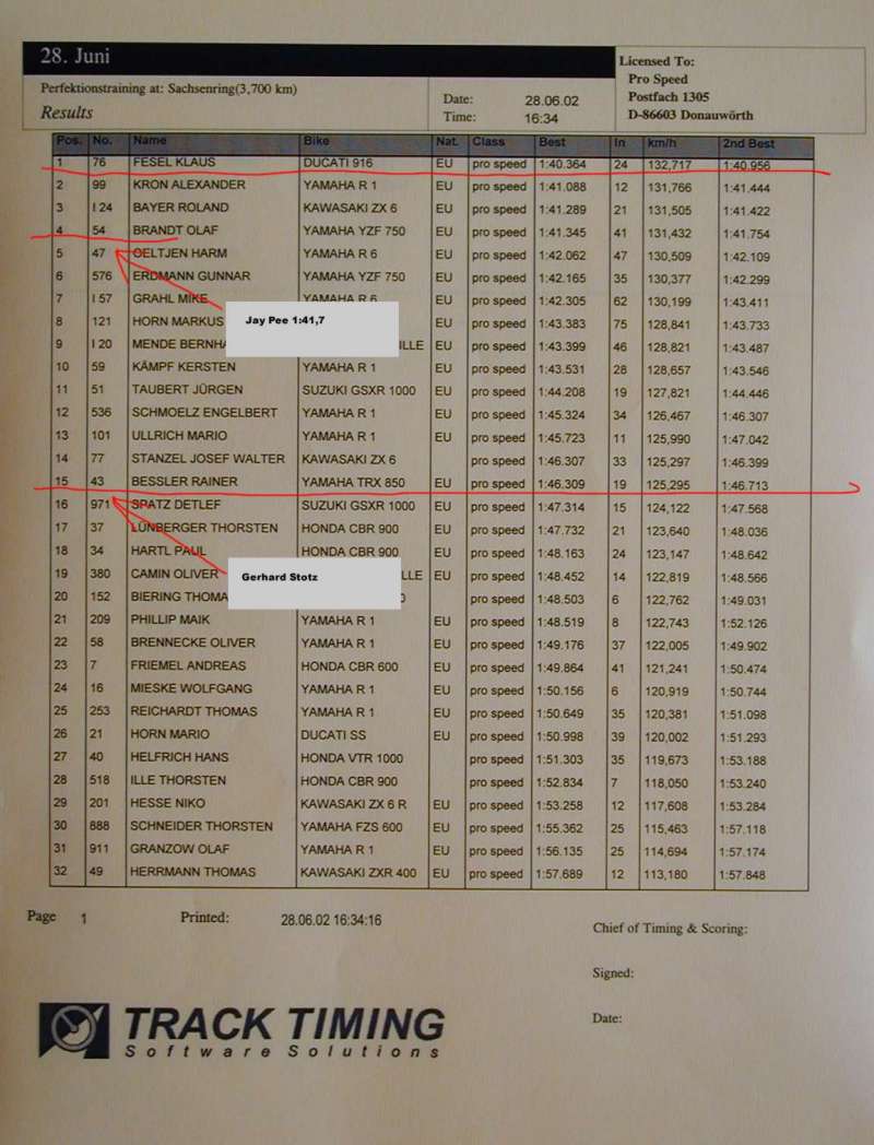 Die offizielle Pro-Speed Liste